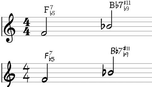 const chord = new ChordSymbol().setFontSize(10).addGlyphOrText("Bb").addGlyphOrText("7(b5)", { symbolModifier: SymbolModifiers.SUPERSCRIPT });