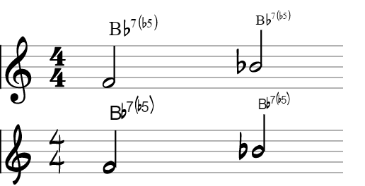 In the example above, we told VexFlow to create a chord with: the letter 'B' for the key, the glyph corresponding with the flat symbol, and the chord extension 7(♭5)