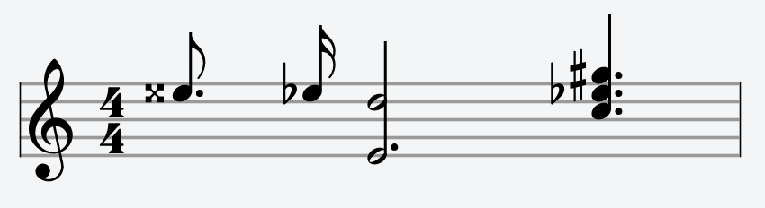 new StaveNote({ keys: ["g/4", "b/4", "cb/5", "e/5", "g#/5", "b/5"], duration: "h" })