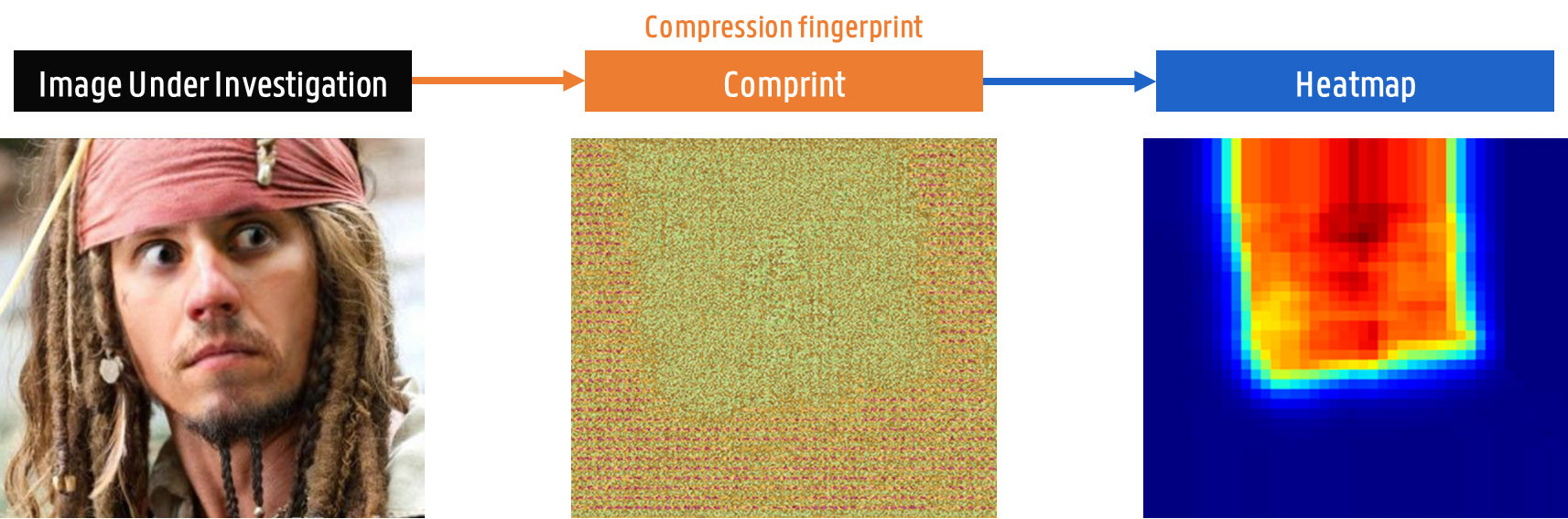 The Jupyter notebook code/get_comprint_heatmap.ipynb gives an example on how to extract the comprint and heatmap. By changing the filename / path, you can extract the comprint from other images under investigation. Our trained models are included in the models folder.