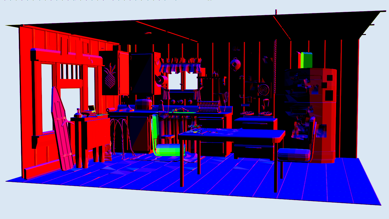 - USD Kitchen, using the UDPT, Diffuse, Position, Normal and Debug integrators: