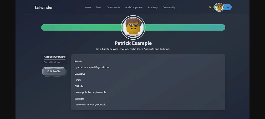 The user profile again, is dynamic. Fetched by Appwrite for this specific user same as the profile picture in the user dropdown Navbar. It detects if the user didn't add a picture then it adds an Avatar instead.