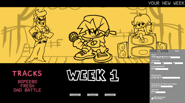 Now that you're on the Week Editor, simply fill all the fields and add your songs there.
