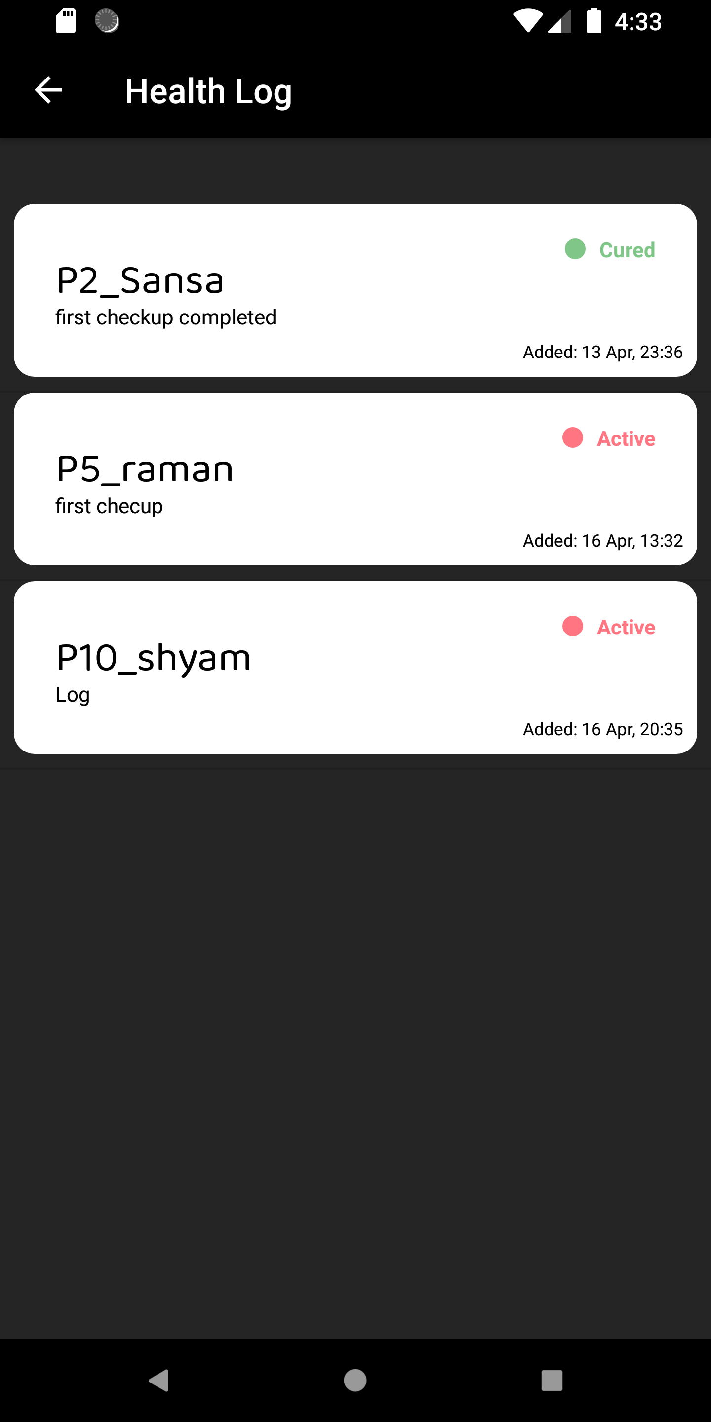Health Log will help the hospitals to store there patient's log. It'd be very useful during this pandemic time of covid19. Hospital authority can store new patient and it will automatically assign the doctor to each patients. Then doctor can check the alotted patient and write the recent log of each patients in each visit which will help to manage the statstics of each pateints. Also, there is web version for this app that is available for the citizens of the city, here if any patient is admitted in a hospital, so that his family members can get the recent log of his member without visiting the hospital. Citizens can also register in website if they want a apointment for checkup. That patient's request is visible in the app.