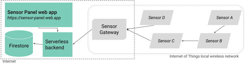 Sensor Panel web app (https://sensor-panel.web.app) is a proof of concept app to monitor data sent by a network of Internet of Things (IoT) sensors (currently simulated with a Google Cloud scheduled function that runs every 3 minutes).