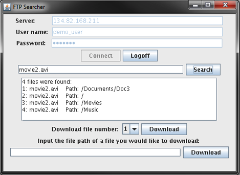 - If the filename and path are known, it may be input in the bottom text box and downloaded via the 'Download' button, forgoing the search process.