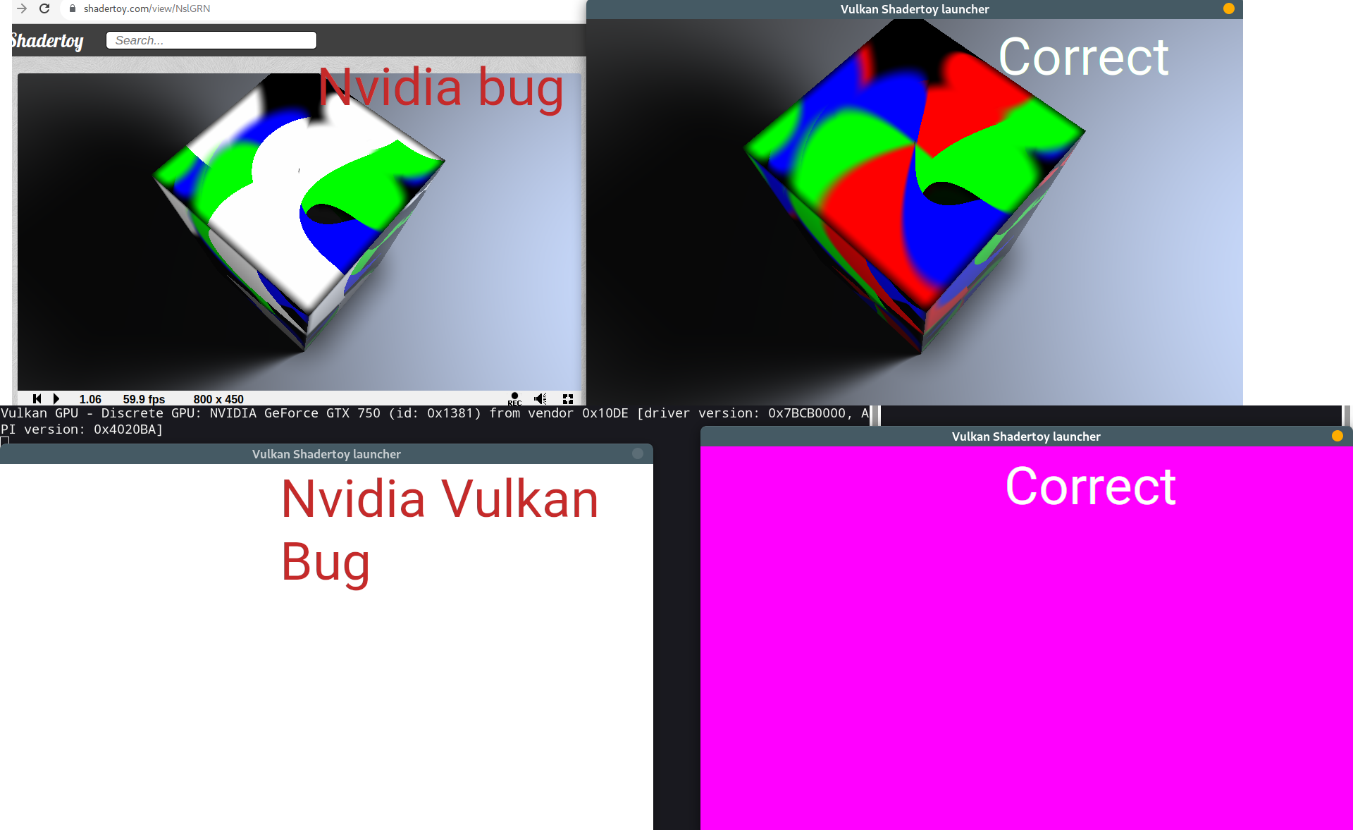 BUG Vulkan Nvidia noise bug - fixed already, but very weird - basically all shaders that use fract and mod was bugged in Nvidia Vulkan for 5 years and no one noticed... Videos of this bug 1 2
