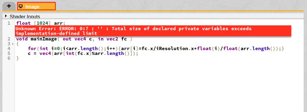 Firefox bugreport with details and code - float [1024] arr; - Firefox 130 does not allow const data >=1024 - incorrectly ignoring MAX_FRAGMENT_UNIFORM_COMPONENTS |