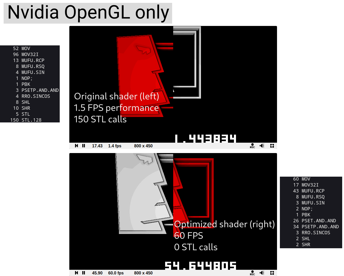 BUG STL slowdown - Only Nvidia OpenGL slowdown, OpenGL Nvidia shader compiler for some reason dont like when arrray is argument. Related to Decompiling Nvidia shaders, and optimizing blog. | |