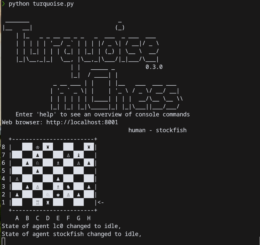 This will start chess agents for the chess board, automatically detecting board hardware via USB or BLuetooth LE (Linux, Raspberry PI only), and load the [first active] UCI engine (testet with Leela Chess Zero (Lc0) and Stockfish 16).