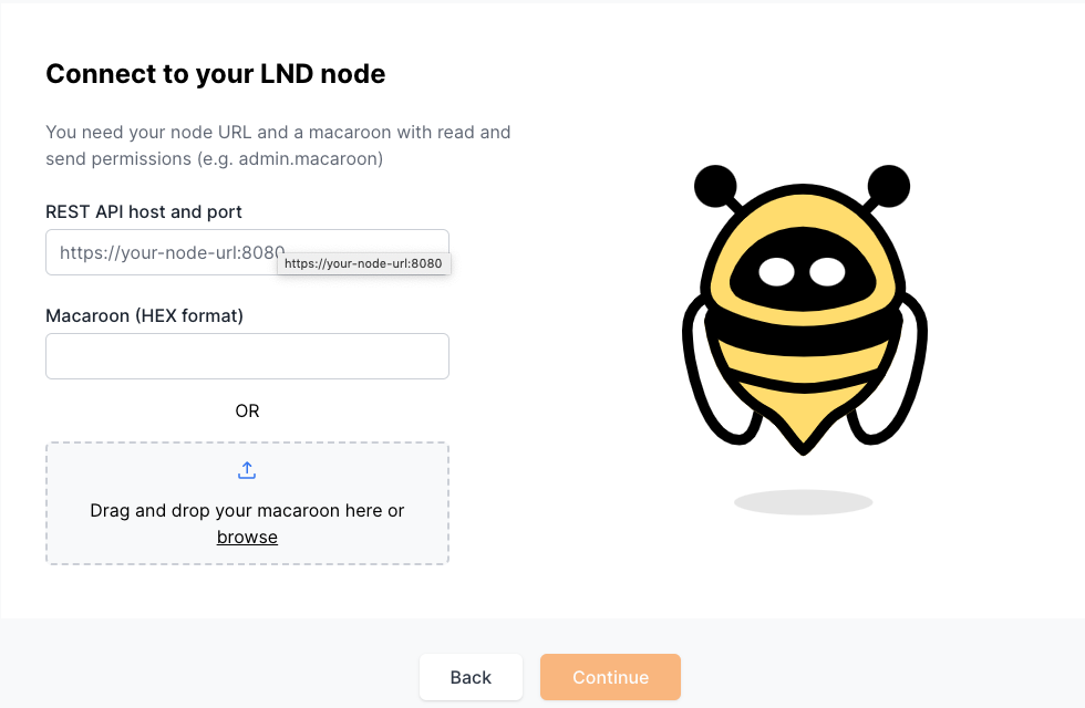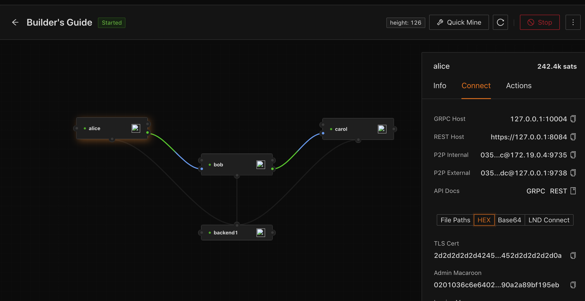 Then select a node, click the hex tab, and copy the rest host and Admin Macaroon to the alby wallet