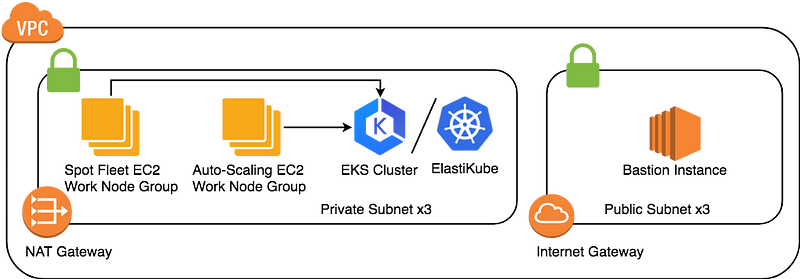 This module creates the Kubernetes control plane, Terraform is responsible for the complicated Kubernetes compoments, and it takes about 10~15 minutes to complete, refer aws/elastikube for the detail variable inputs.