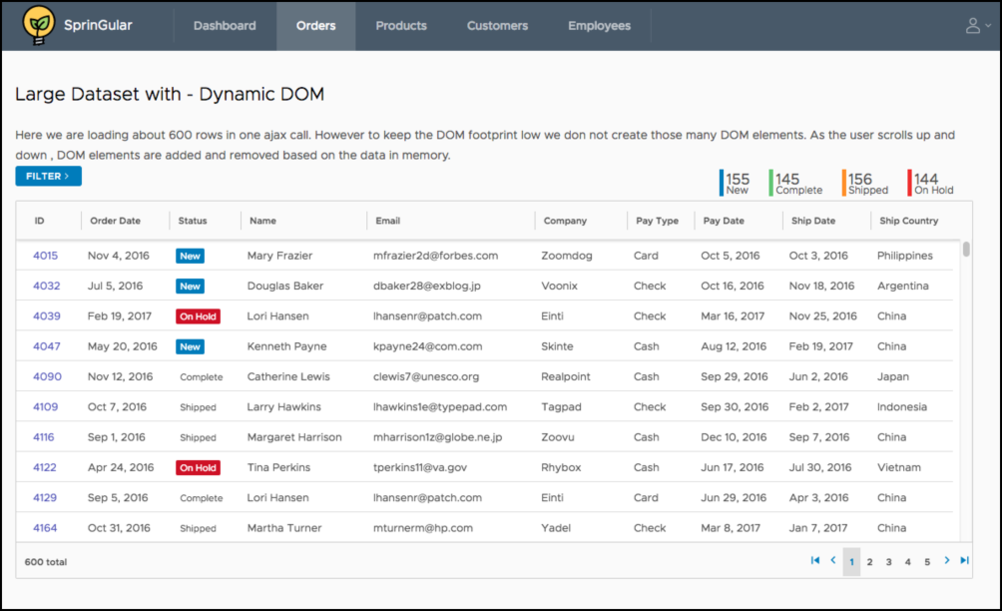 • Techniques to load large data set in a data-table but still keeping DOM footprint less