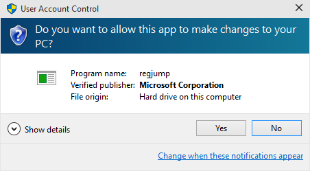 Finally, since Regedit requires elevation to launch, you will always get a UAC popup asking you to confirm before launching the actual regedit.exe