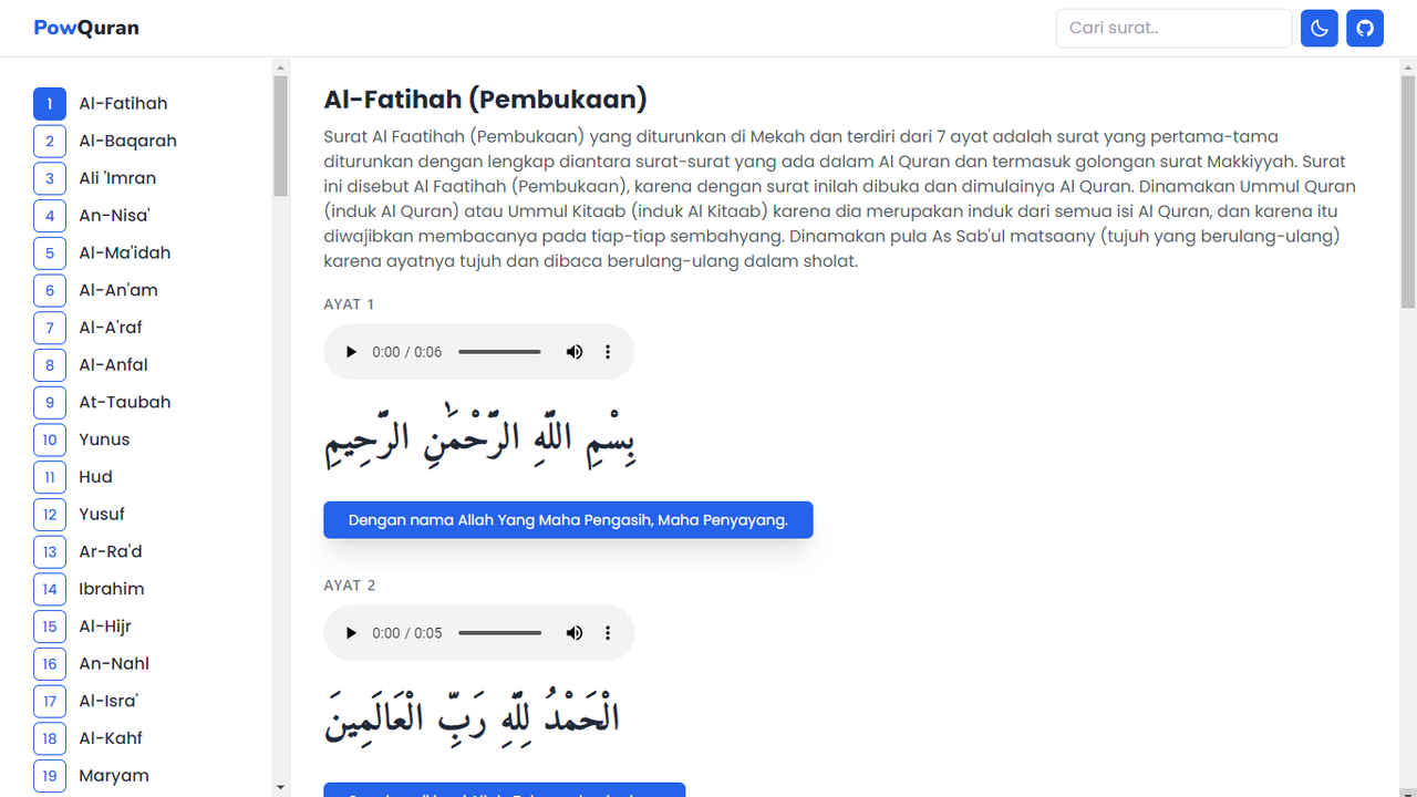 Desc: PowQuran is an online Al-Quran that can be accessed on a cellphone or laptop easily, recite and listen to the holy verses wherever you are!