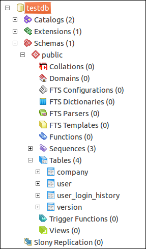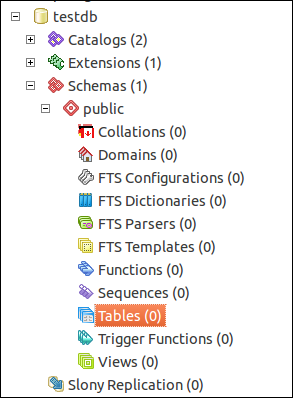 As a first step, we need a database. Let's create a new one with "testdb" name. At the moment, there is no table in it.