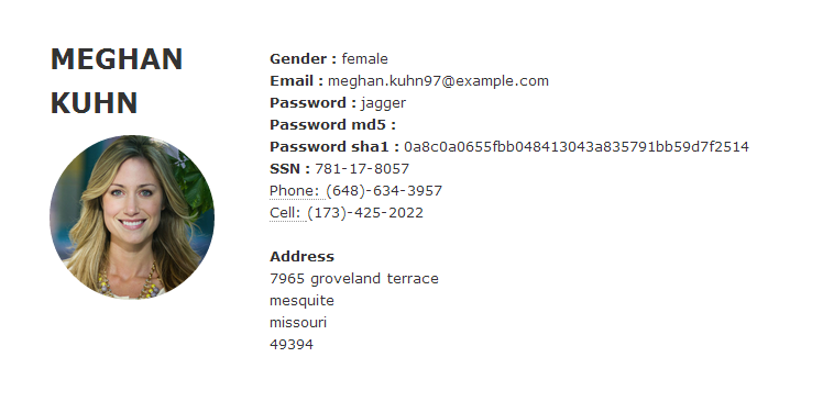 This gem allows you to generate pretty user's information with an avatar, name, password, email, gender, phone ...