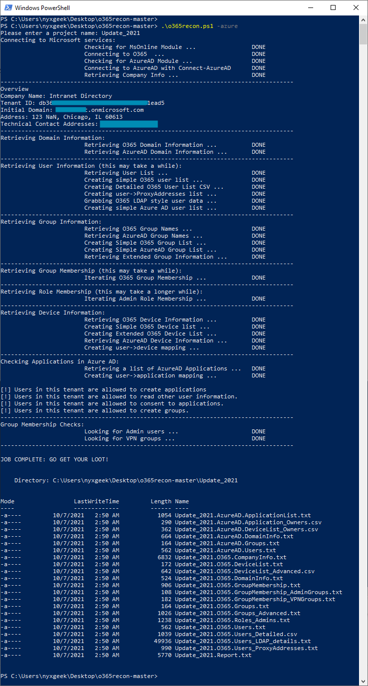 There is only one flag (-azure) and it is optional. You will be prompted to auth. You may be prompted twice if MFA is enabled.