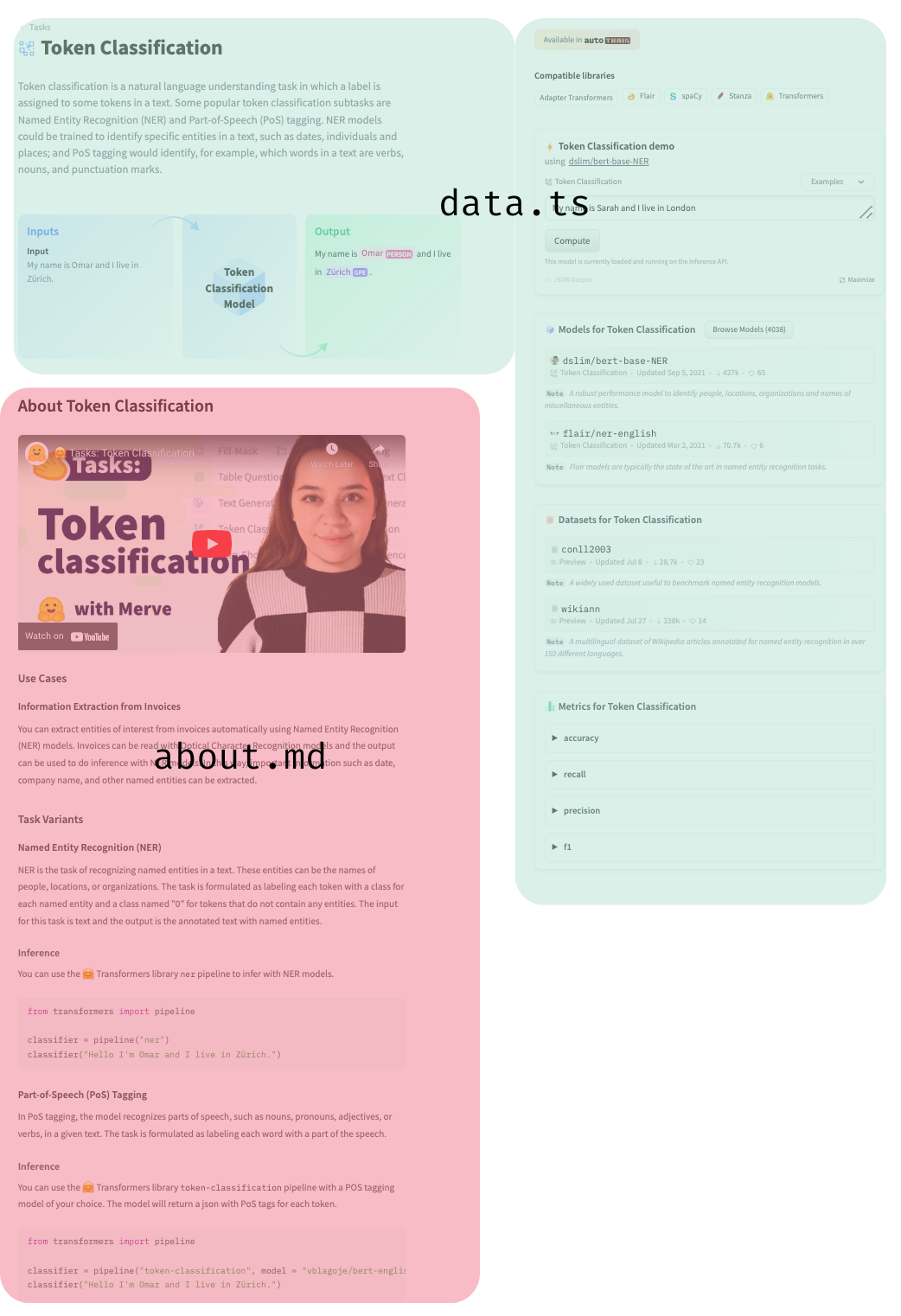 The task pages avoid jargon to let everyone understand the documentation, and if specific terminology is needed, it is explained on the most basic level possible. This is important to understand before contributing to Tasks: at the end of every task page, the user is expected to be able to find and pull a model from the Hub and use it on their data and see if it works for their use case to come up with a proof of concept.