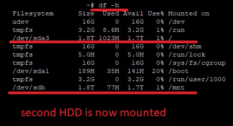 To check, type df -h and if you notice your OTHER HD not there, you need to follow the steps below.