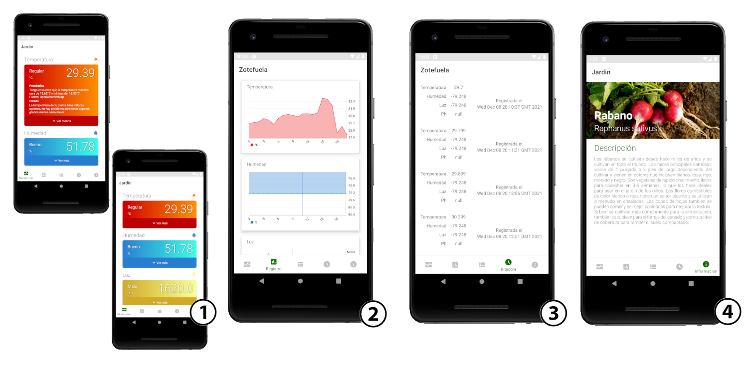 Aplicación movil Android para el proyecto de trabajo terminal: Prototipo de Sistema para Monitoreo Remoto de Plantas 2020-B031. Desarrollada para tener acceso a funcionalidades como monitorización, configuración