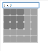 jquery.grid-picker jQuery plugin for picking a column and row layout Usage $('.input-element').gridPicker({ rows: 10, cols: 10 }); http://jsfiddle.net/tnn3qgvj/9/