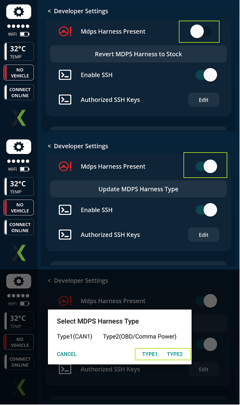 - MDPS Harness connected to OBD/Comma power(type2) - most popular