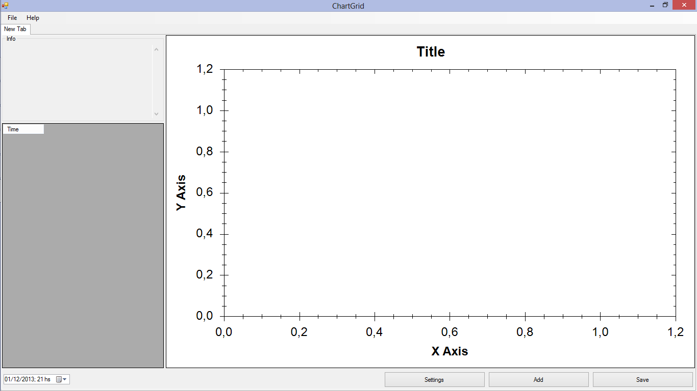 After running the application you will see an empty ChartGridControl within the only Tab object:
