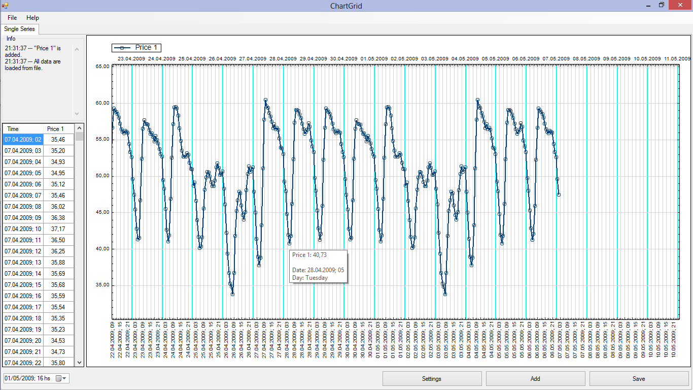 folder written on C# and VB.NET that use the ChartGridControl. Examples are at first designed to demonstrate how to use the control regadless of the programming language. Examples are completely the same, except for the programming language, so each of those ones you can use as a standalone software - ChartGrid. The program have a quite intuitive interface.
