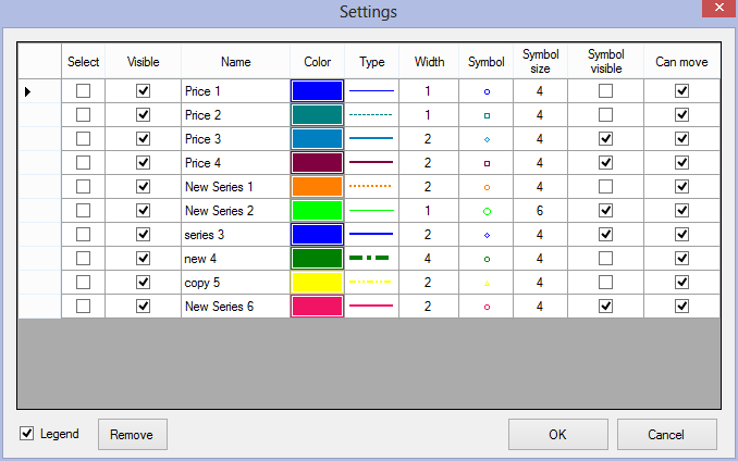 You can adjust the appearance of the chart as you want via the Settings dialog. Click on the Settings button to display this dialog: