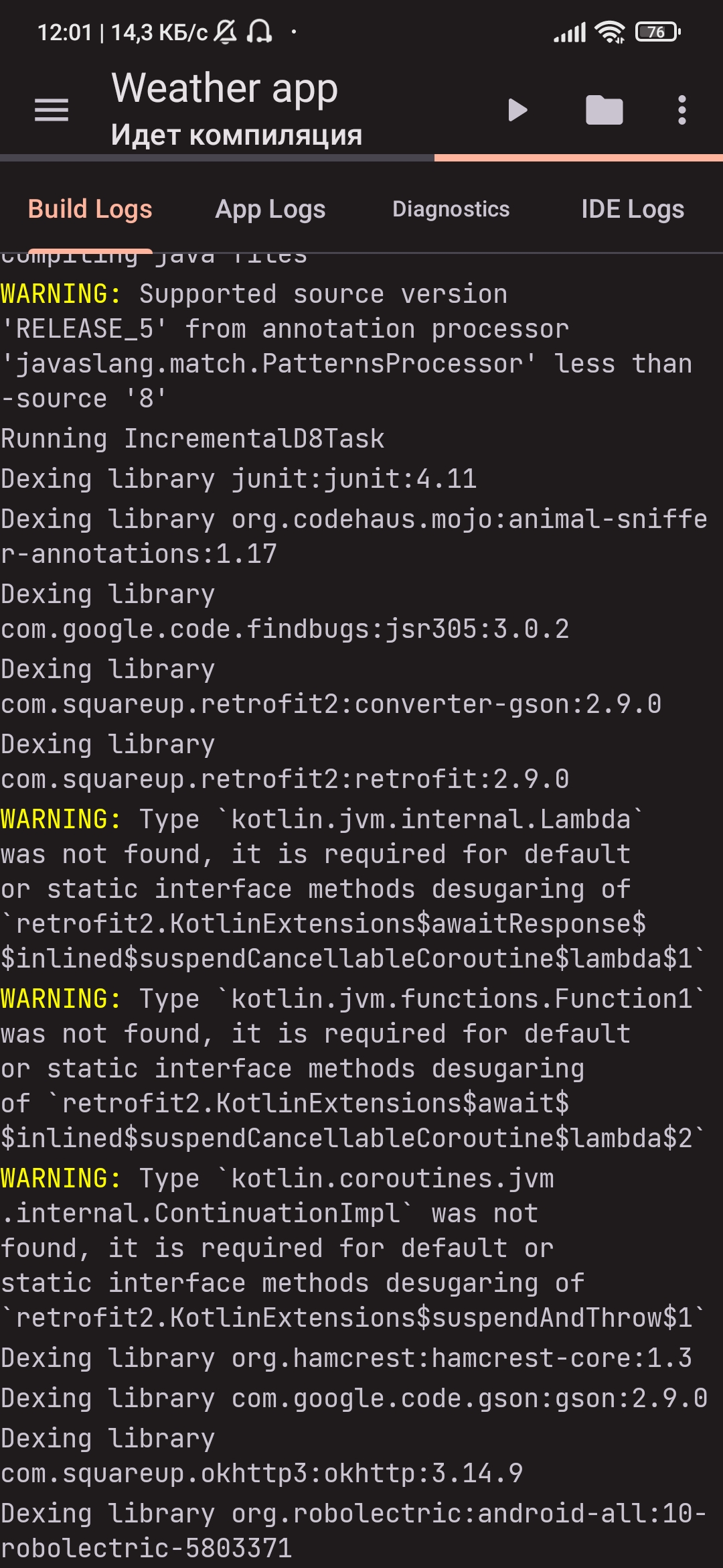 Hello, I've been trying to fix a bug for 3 days now. Compilation slows down at the stage of dexing org.robolectric.... I read on the Internet, they write that this is a library for testing in Android studio... Maybe someone has already encountered this problem, how to solve it?