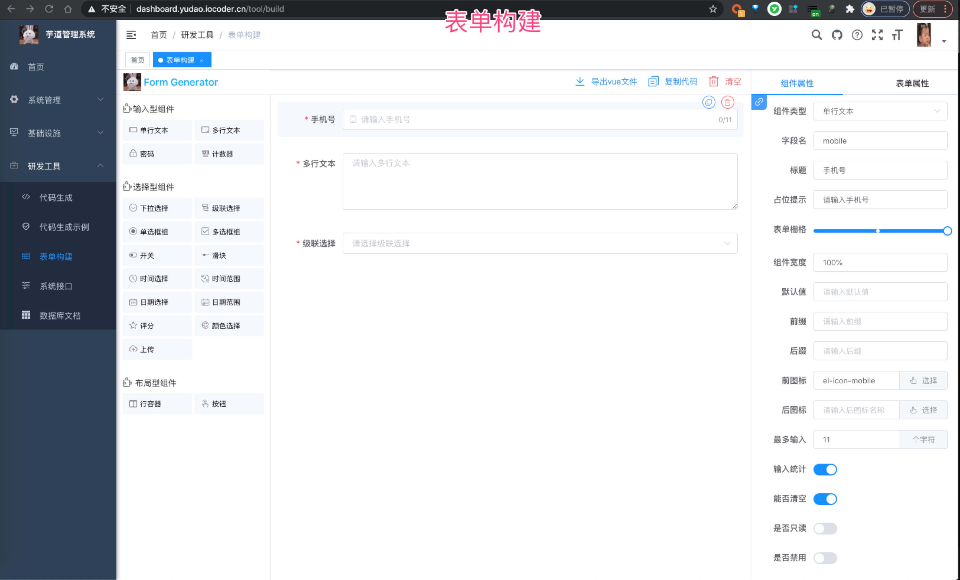 芋道,一套全部开源的企业级的快速开发平台,毫无保留给个人及企业免费使用。